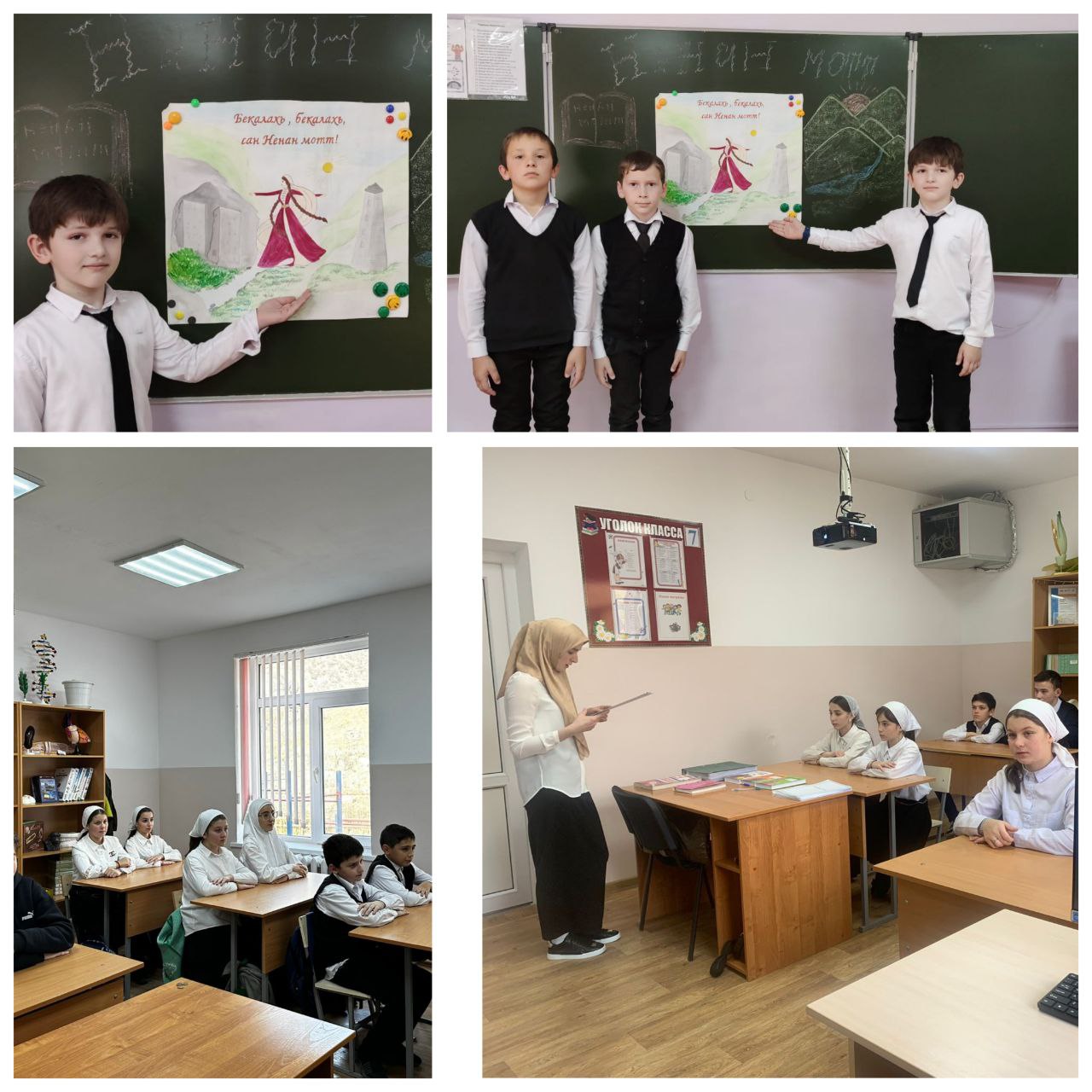 18.12.2023С целью сохранения, развития и популяризации чеченского языка, культуры и традиций чеченского народа а также привлечения внимания молодежи к родному языку, воспитания и укрепления у молодого поколения любви к чеченскому языку18.12.2023г. в МБОУ «СОШ с.Ушкалой» проведены классные часы "Меттан хазалла", "Беза бовза хьайн ненан мотт", "Ненан мотт-сан дозалла" среди обучающихся 1-11 классов.